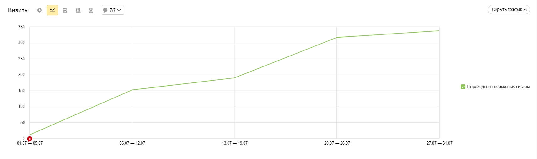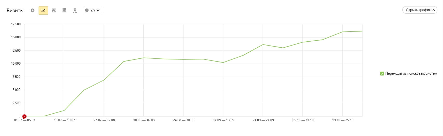 Для достижения результата по большому количеству ключевых запросов требуется не менее 6 месяцев. Но несмотря на это, часть ключевых запросов можно вывести в ТОП-10 уже на 2-3 месяце работ.